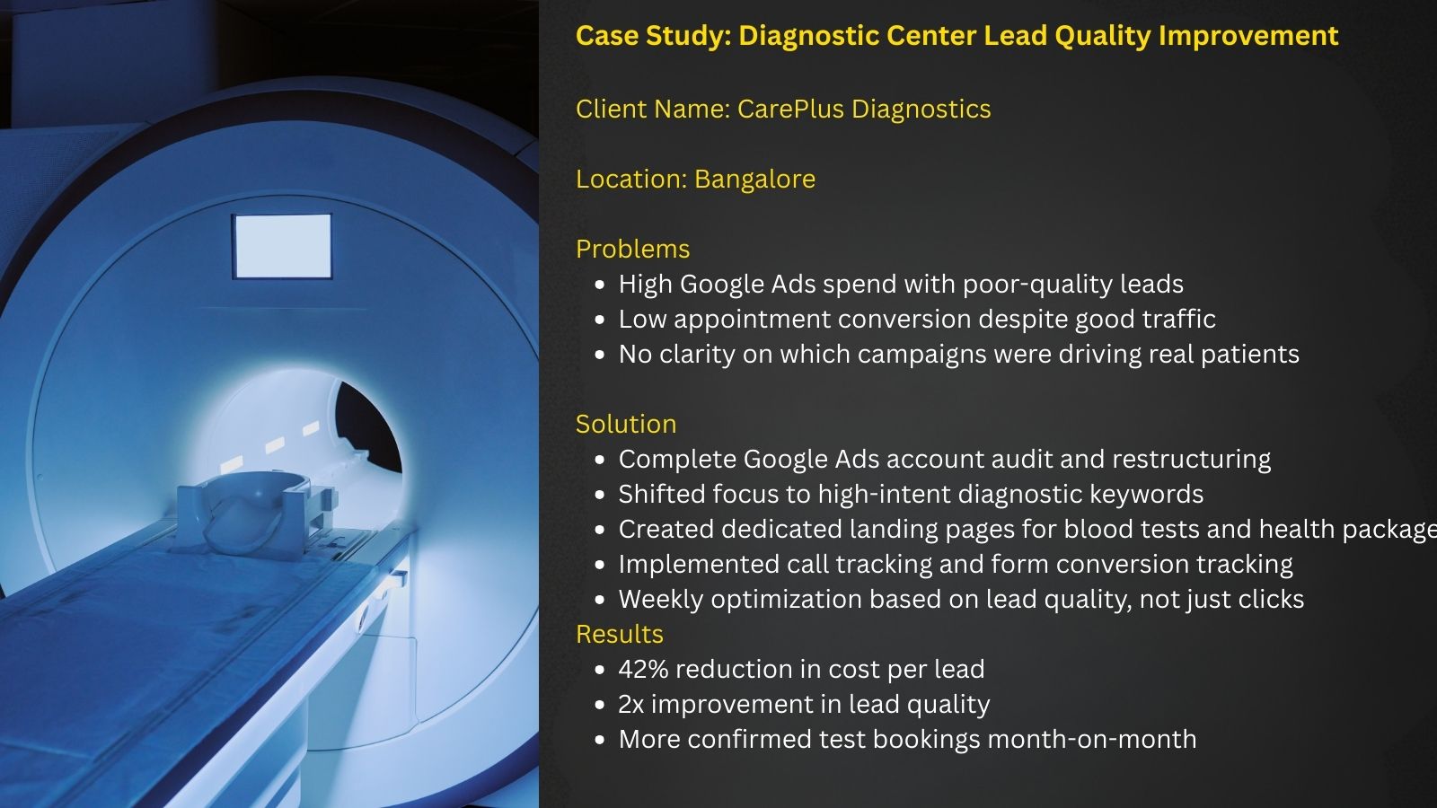 “MediGrow runs high-intent Google Search Ads that capture patients actively searching for healthcare services. Our ads target local keywords and appointment-ready searches to generate more calls and bookings.”