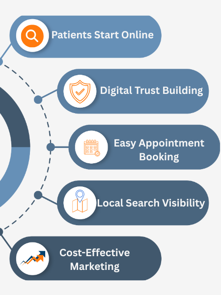 Patients Start Online : Patients turn to search engines when they need medical help or information.Online visibility helps healthcare providers get discovered at the exact moment of need.Without a strong digital presence, patient opportunities are easily lost.